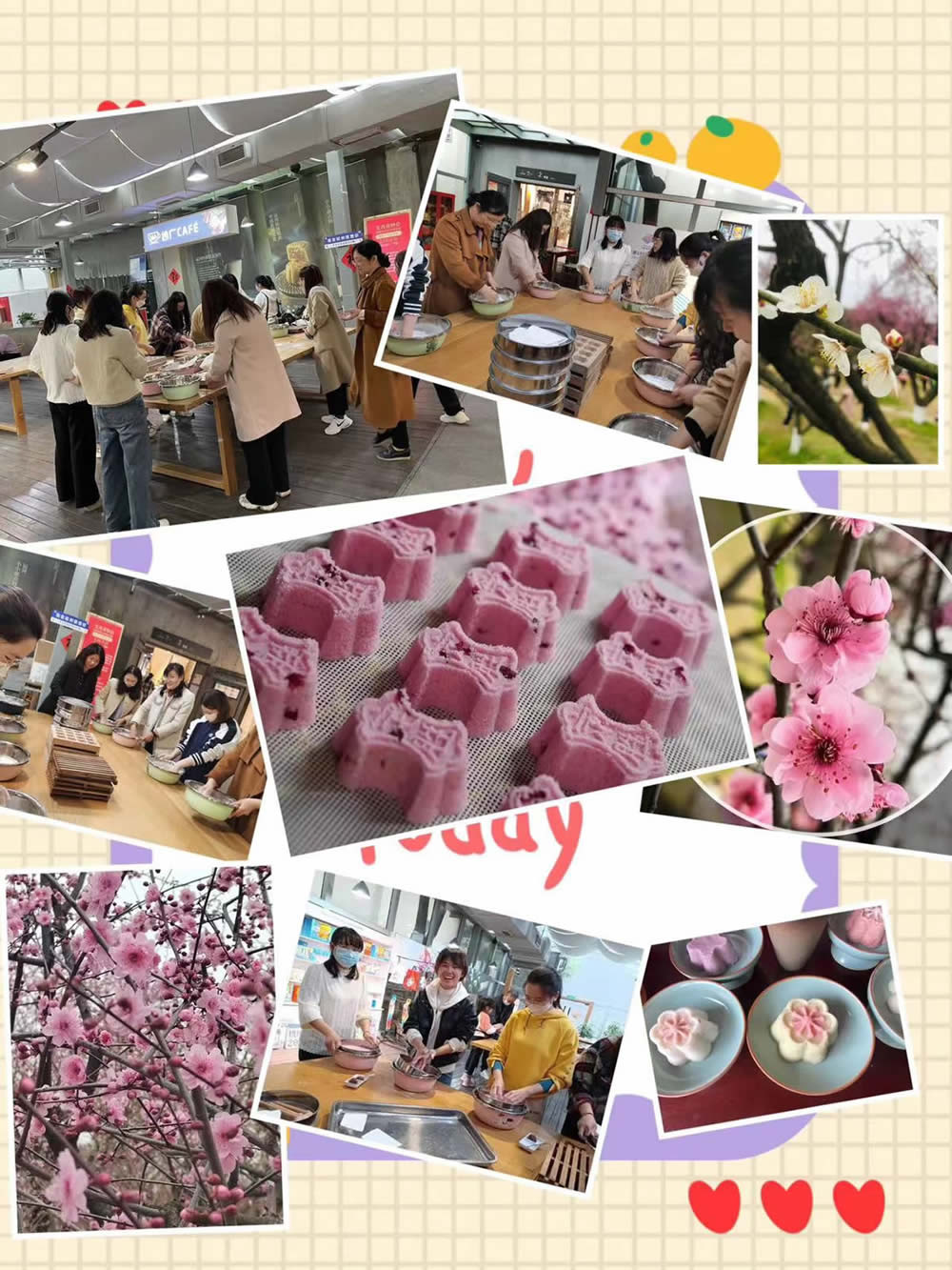 重頭戲在手工藝活態館大家親手制作了江浙一帶的特色糕點---定勝糕,寓意吉祥美好,意表吃過它凡事步步高。在這樣的特別日子里,泰達人祝公司和家人都必勝。吃完定勝糕我們賞超山“唐”、“宋”梅,游十里梅花香雪海,沉浸式體驗宋韻文化,偶有飄過幾滴春雨,春風化雨潤紅花,更有一番風味。